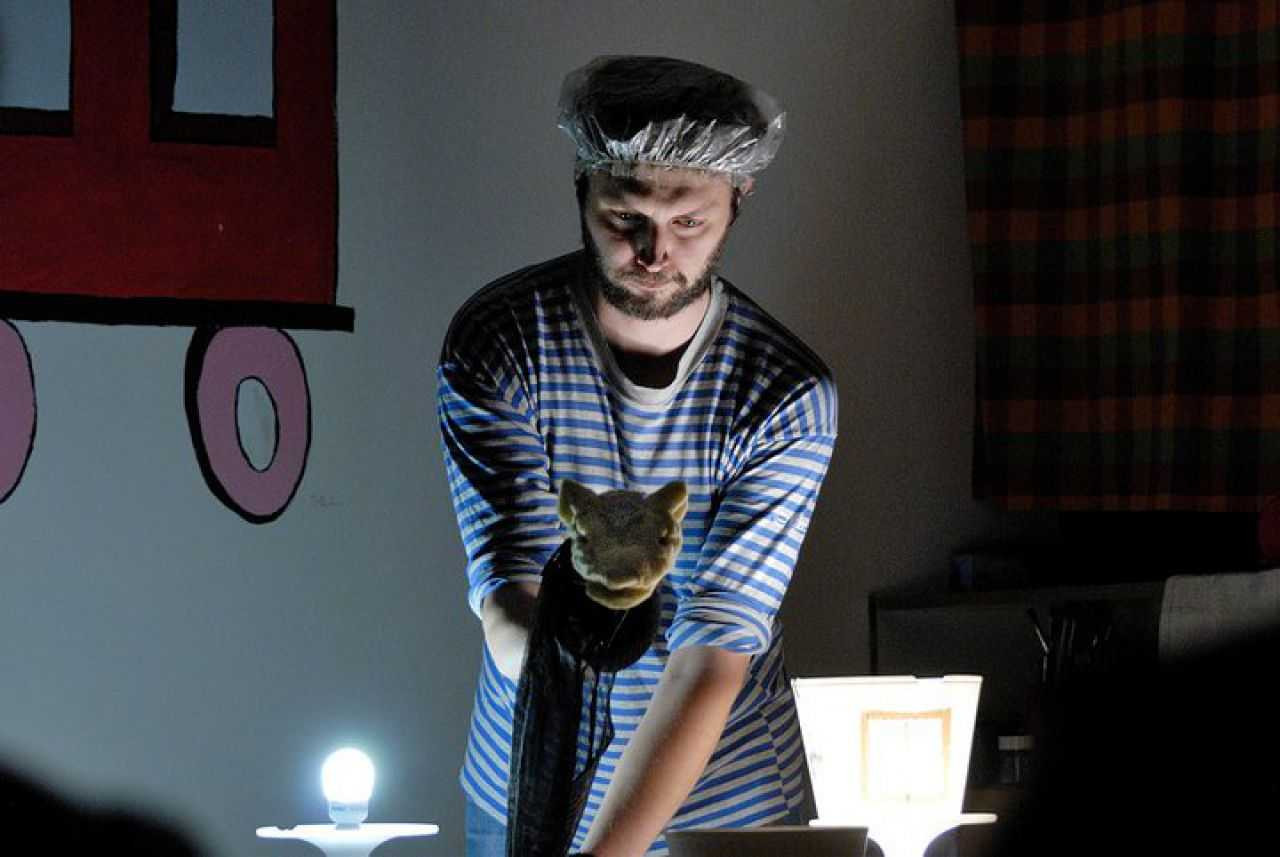 Punkové loutkové divadlo. Mezinárodně úspěšná koláž Červené Karkulky a pohádky O třech kůzlátkách, odehrávající se uprostřed skandinávské zimy a polární noci. Haůůůůů!!!